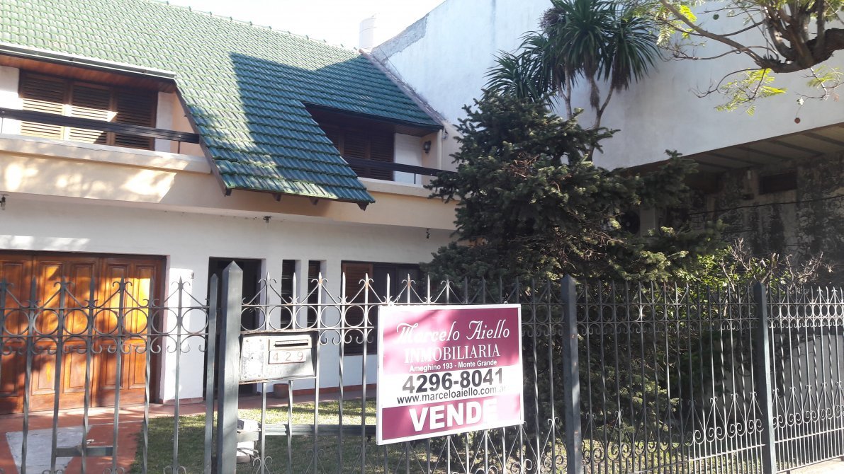 Amplio chalet ubicado en destacado Barrio de Monte Grande. Cuenta con tres dormitorios, escritorio, dos baños, cocina/comedor, living, garage para dos autos y quincho.-