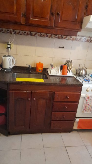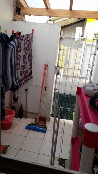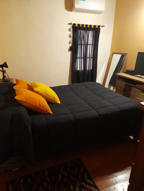 Cuenta con dos dormitorios, cocina, comedor, baño, y patio.