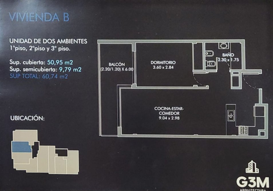 Este proyecto esta compuesto de tres plantas de viviendas de dos y tres ambientes.