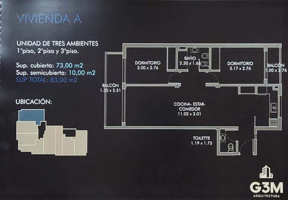 PRECIO POR UNIDAD DE TRES AMBIENTES CON COCHERA U$S135000
