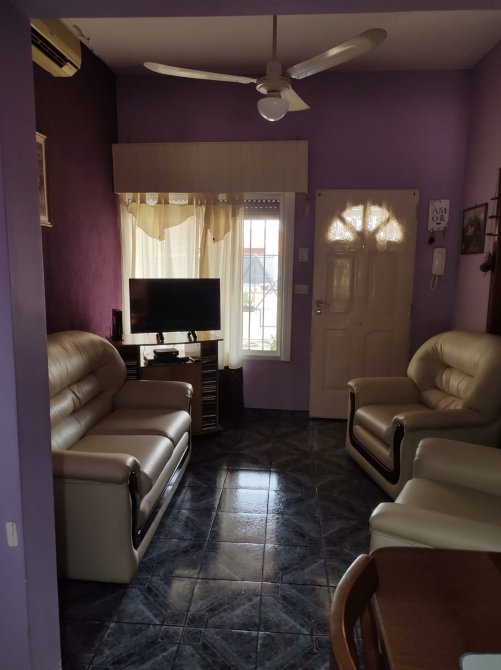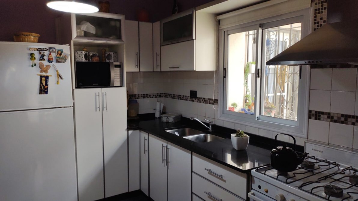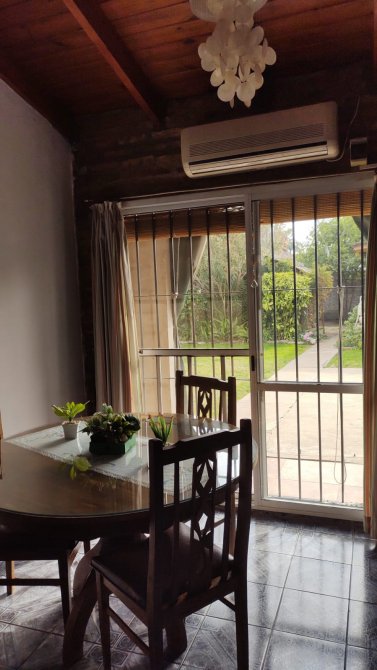 Interesante casa ideal para dos familias. La parte principal cuenta con dos dormitorios, cocina, livng/comedor, baño, lavadero y cochera. En la parte posterior tiene un departamento de dos ambientes. Tiene quincho y jardin. Todos los Servicios.